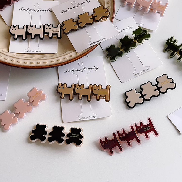 These cute hair clips are in the shape of lovely animal. The hair clips are made of cute multi-colored acetate. These hair accessories are part of our freshest and fashionable collection of hair items while maintaining a touch of elegance. These acetate hair clips are a great hair accessory for the “cute” woman who appreciates the youthfulness and playfulness of these items. They can add just the right touch to any hairstyle.