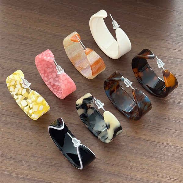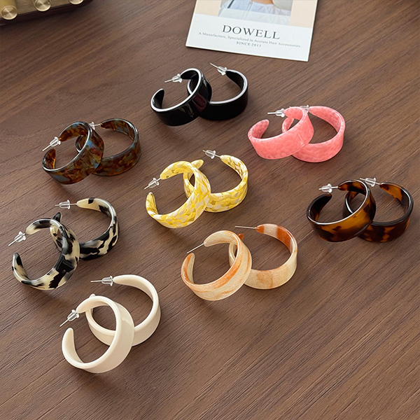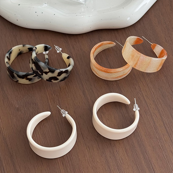 This earring is made from high-quality acetate, which has been precisely cut, ground and polished to give it a delicate surface luster and natural textured patterns in the tortoiseshell pattern and the distribution of the polka dots. The earring is light weight and comfortable to wear without any feeling of weight. The earring posts are made from hypoallergenic metal safe for your skin. Using high-quality acetate material gives this earring delicate and elaborate design. The thickness and curvature of the C-shaped hoop have been thoroughly adjusted to create an impressive exaggerated expression and a snug fit that won’t fall off.